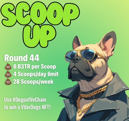 With another successful week behind them, @scoopup_Vet has given away 70.13% of their B3TR allocation. From round 44 (starting April 28th 2025) they will be slightly altering the rewards structure. The new rules are: